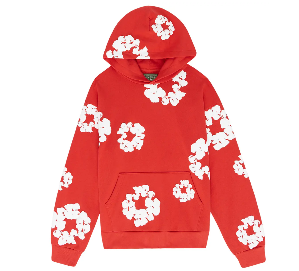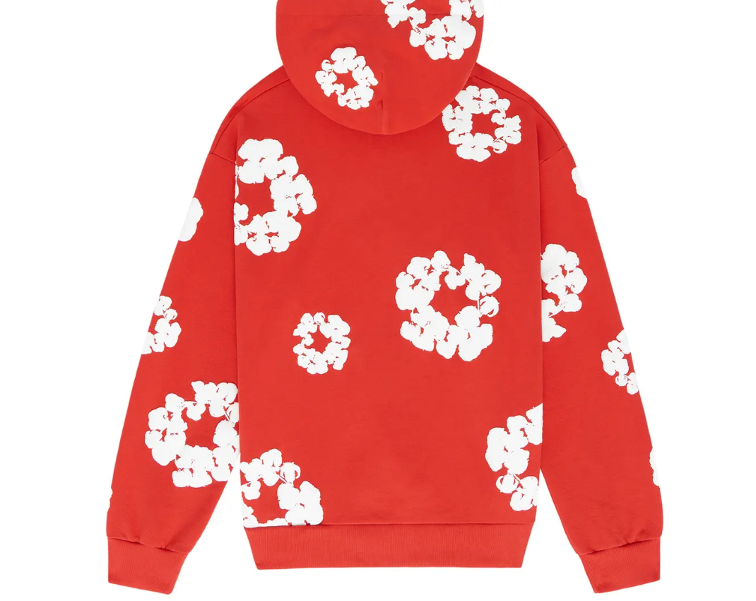 The striking red base is paired with the iconic cotton wreath graphic across the chest—an emblem that reflects the brand’s cultural narrative and artistic identity. Finished with ribbed cuffs and hem, this sweatshirt is designed for comfort and lasting wear.