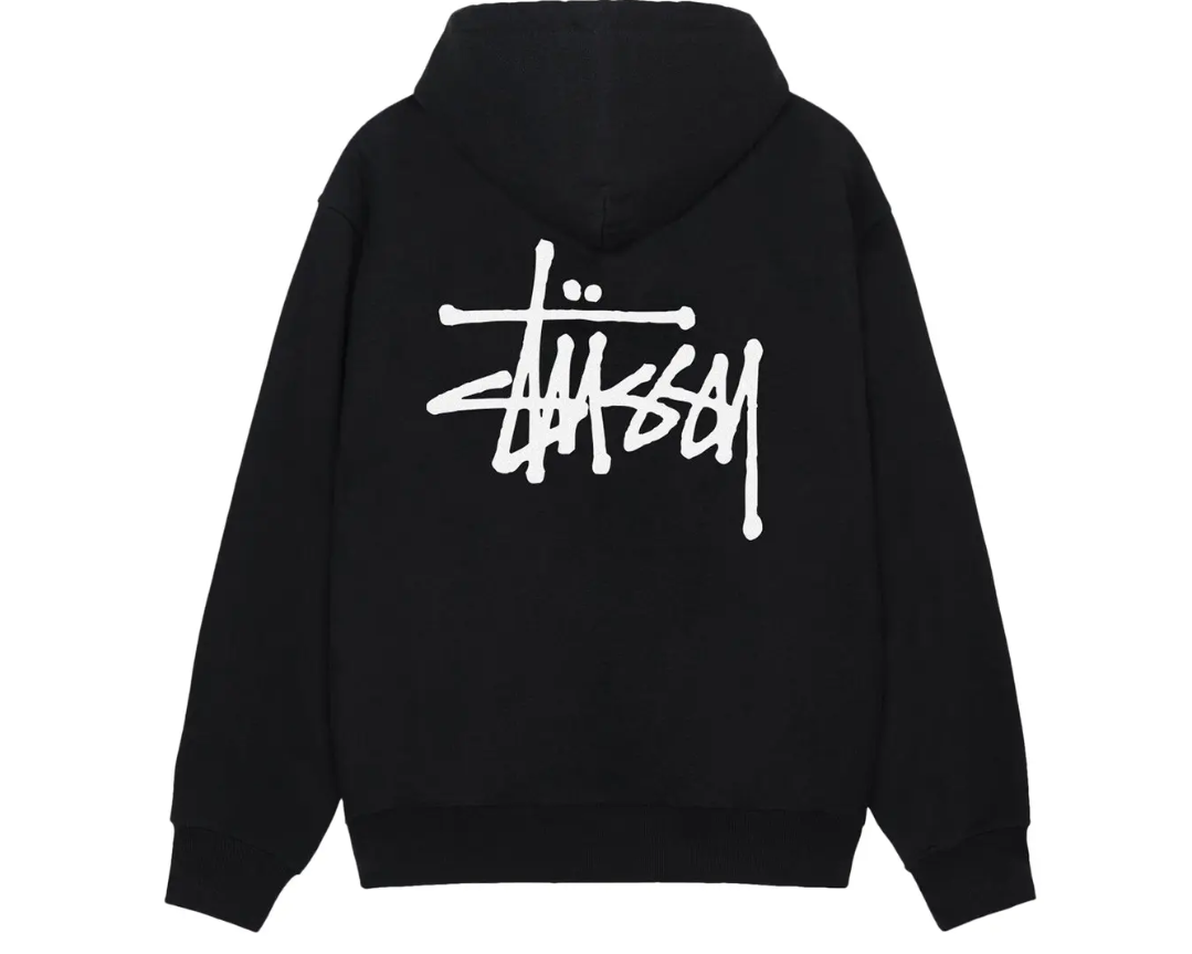 The clean black colorway and minimalist design make it versatile and easy to style, while the iconic Stussy branding subtly represents the label’s legendary streetwear heritage. Features include a spacious hood, ribbed cuffs, and hem for comfort, structure, and durability.