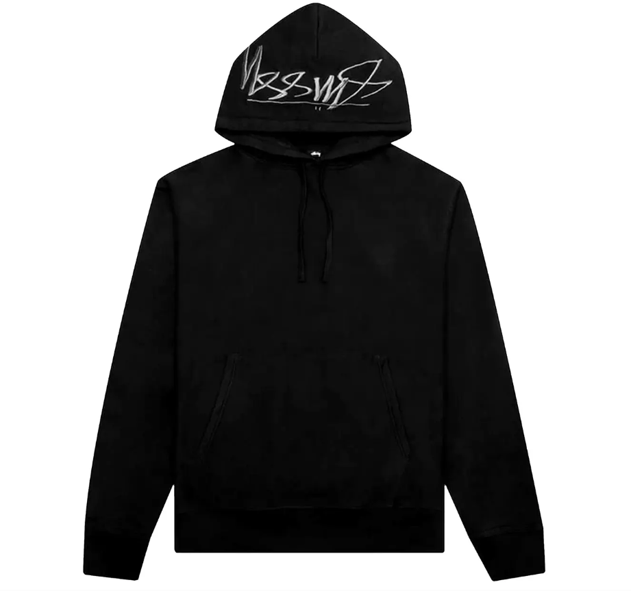 The standout feature is the embroidered Stussy logo on the hood, providing a subtle yet distinctive touch that elevates the classic hoodie silhouette. Ribbed cuffs, hem, and a spacious hood ensure structure, comfort, and durability, while the sleek black colorway makes it versatile and easy to style with any outfit.