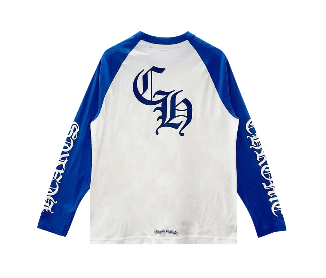 Chrome Hearts Long-Sleeve Horseshoe Baseball Tee – White/Blue